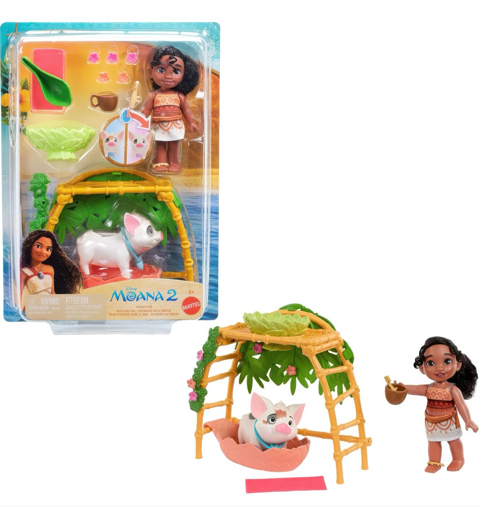 Τα παιδιά μπορούν επίσης να βοηθήσουν την κούκλα Simea να βουρτσίσει τα δόντια της Pua και να ξεπλύνουν τη μέρα. Οι φίλοι ηλικίας 3 ετών και άνω μπορούν να εξερευνήσουν νέες αποστολές στο νησί ή να αναδημιουργήσουν στιγμές από την ταινία με τη ζωηρή μικρή αδερφή της Moana, την Pua, και την υπόλοιπη οικογένεια και φίλους της (κάθε ένα πωλείται ξεχωριστά, ανάλογα με τη διαθεσιμότητα). Η κούκλα δεν μπορεί να σταθεί μόνη της. Τα χρώματα και οι διακοσμήσεις μπορεί να διαφέρουν.