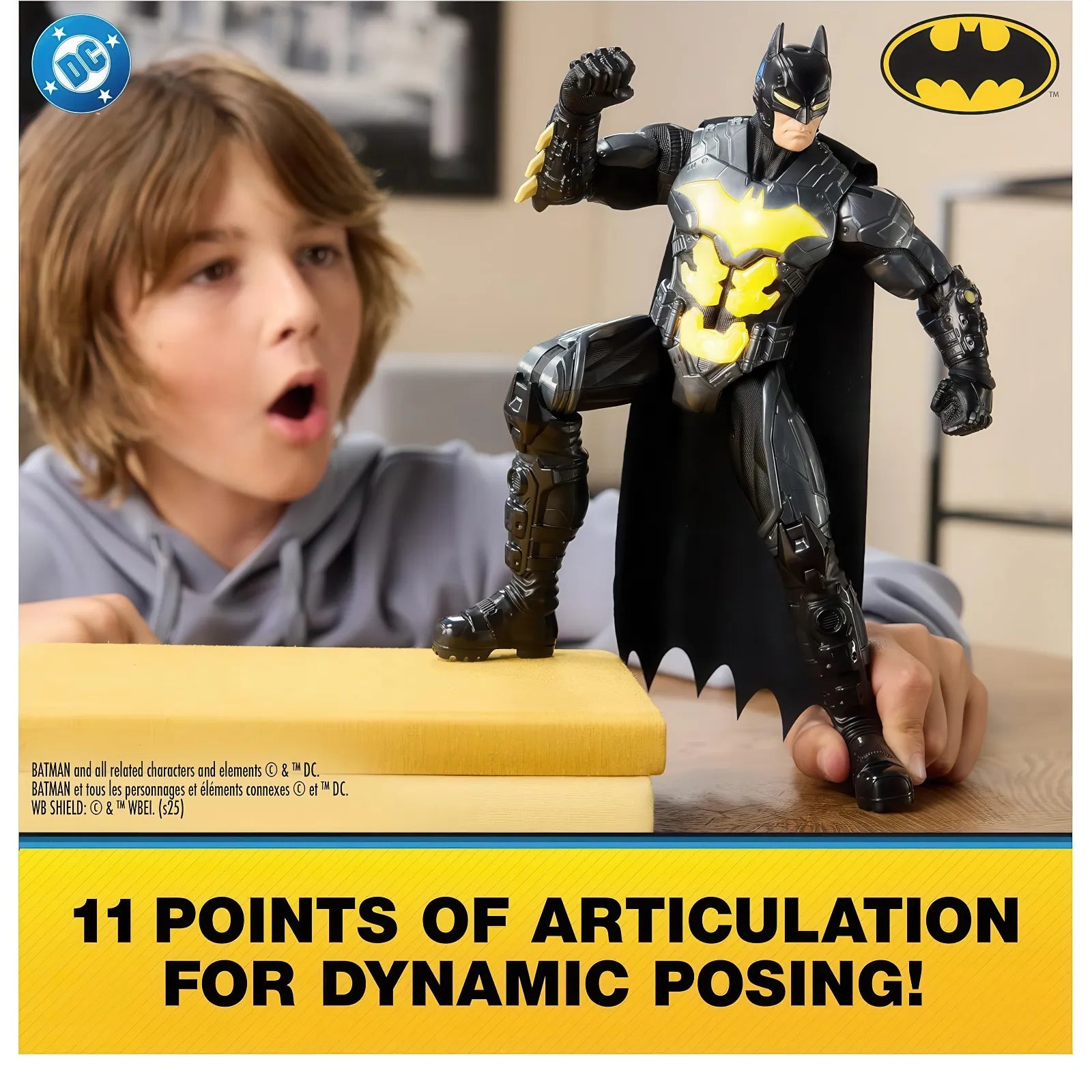 Μετατρέψτε το παιχνίδι σε μια επική περιπέτεια υπερήρωα με αυτή την εξαιρετική φιγούρα Batman Night Flare 30cm από τα DC Comics! Ιδανική για μικρούς ήρωες ηλικίας 4 ετών και άνω, αυτή η premium συλλεκτική φιγούρα ζωντανεύει τον μεγαλύτερο προστάτη της Gotham με απίστευτα διαδραστικά χαρακτηριστικά.