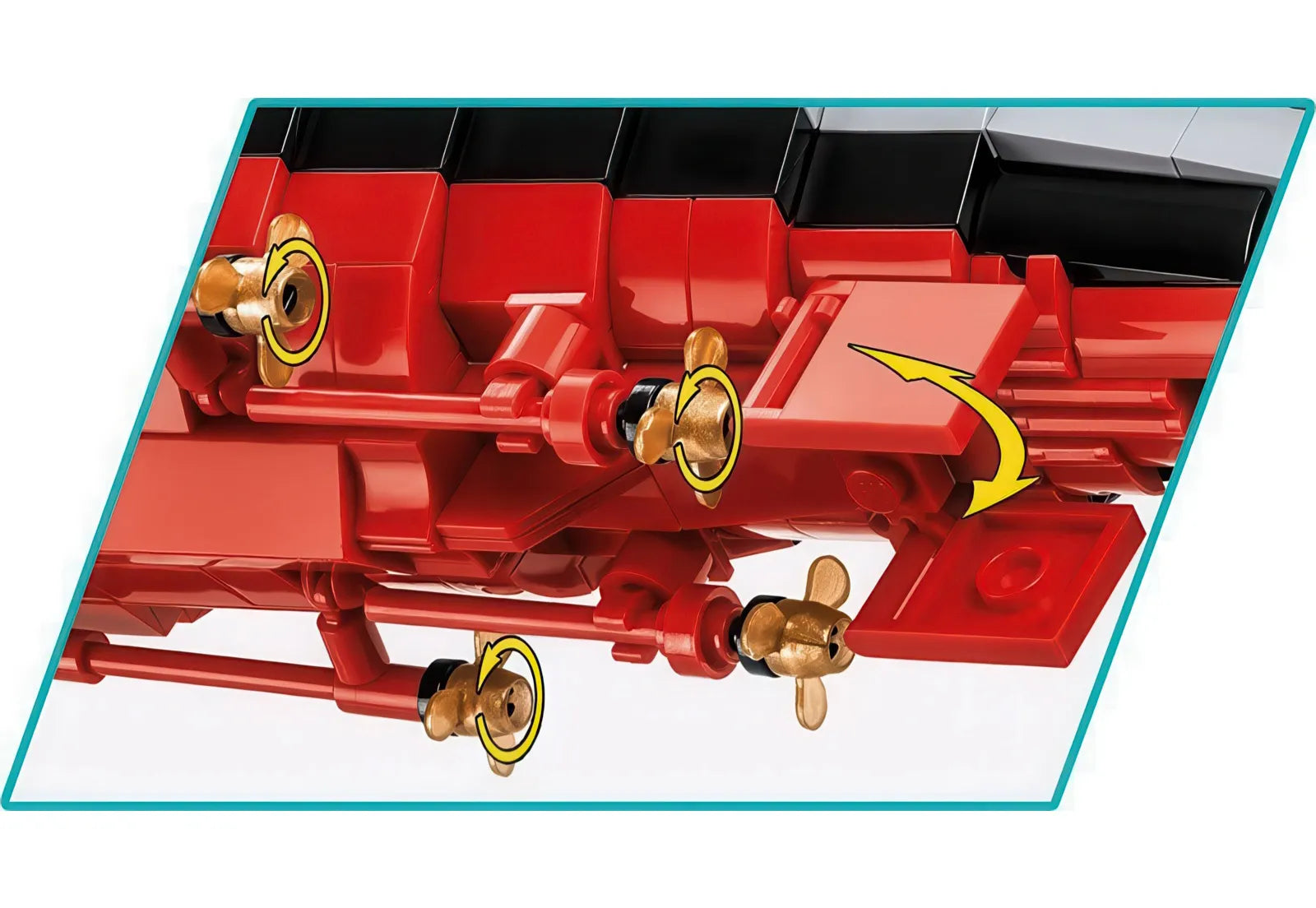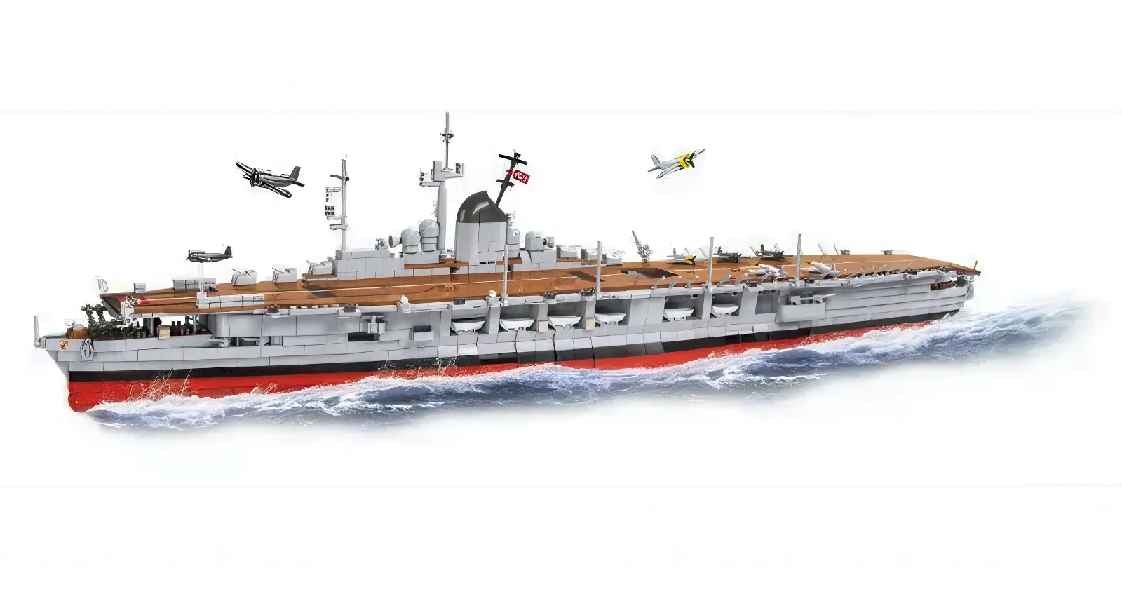 Οι υψηλής ποιότητας εκτυπώσεις αναπαριστούν με ακρίβεια τη ζωγραφική της γέφυρας και τις λεπτομέρειες του πλοίου από την περίοδο του Β' Παγκοσμίου Πολέμου. Οι εκτυπώσεις δεν φθείρονται ακόμη και με εντατική χρήση. Για πρώτη φορά έχει σχεδιαστεί λειτουργικός ανελκυστήρας αεροσκαφών σε μοντέλο COBI. Με τη βοήθεια ενός κουμπιού που βρίσκεται στο αόρατο κάτω μέρος του σκάφους, μπορείτε να ανεβάζετε και να κατεβάζετε τον ανελκυστήρα με το αεροπλάνο προσαρτημένο σε αυτόν. Το μοντέλο συνοδεύεται από οκτώ μικροσκοπικά αεροπλανάκια από τουβλάκια, που κατασκευάζονται σε νέες χρωματικές εκδόσεις. Το σετ περιλαμβάνει επίσης ένα ειδικό διαφανές τουβλάκι που, μετά την τοποθέτησή του στη βάση, μπορεί να μιμηθεί ένα αεροπλάνο που απογειώνεται.