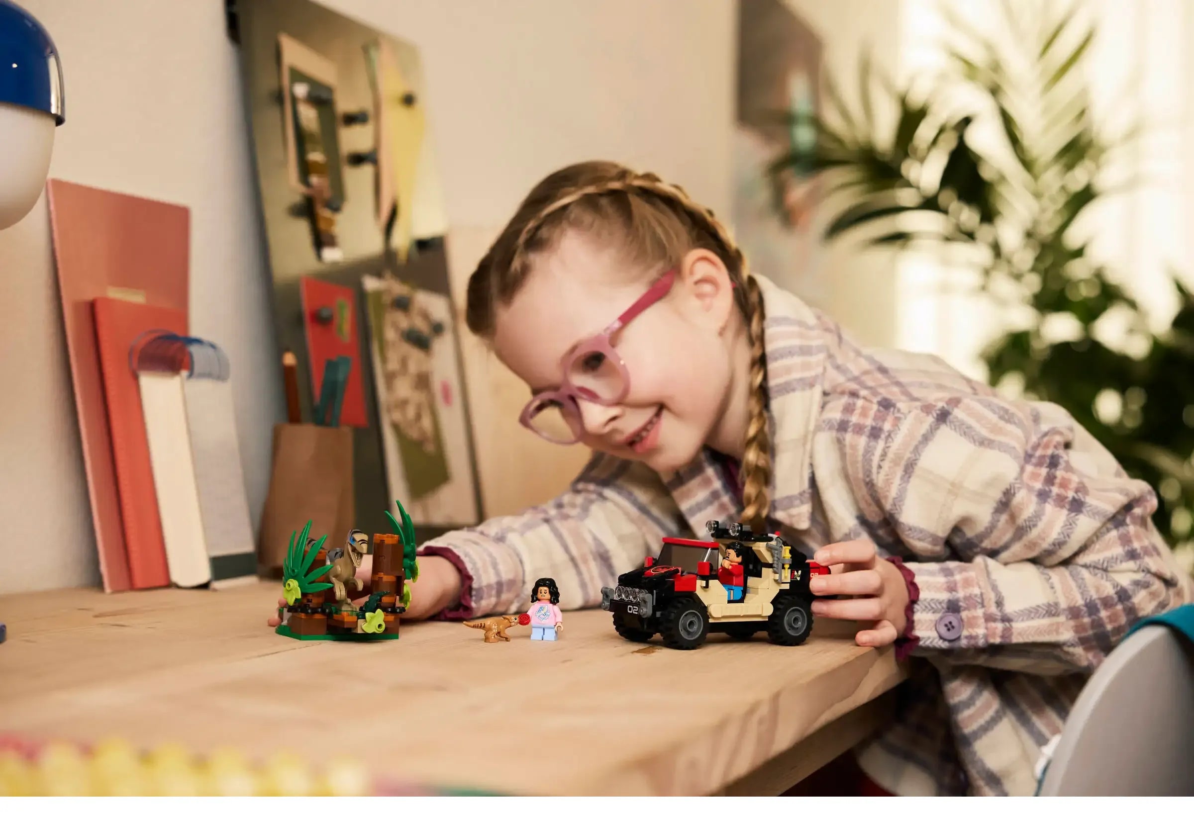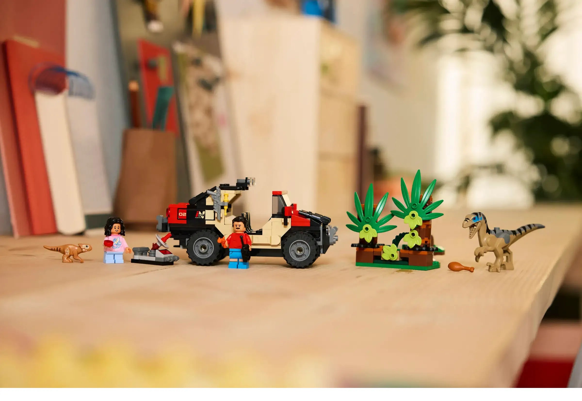 • Δημιουργικό σετ κατασκευής – Περιλαμβάνει καλουπωμένες φιγούρες LEGO® δεινοσαύρων ενός μωρού Aquilops και ενός Velociraptor, καθώς και ένα εκτός δρόμου όχημα και τις μινιφιγούρες Reuben και Isabella για να πυροδοτήσουν το παιχνίδι κυνηγιού δεινοσαύρων.