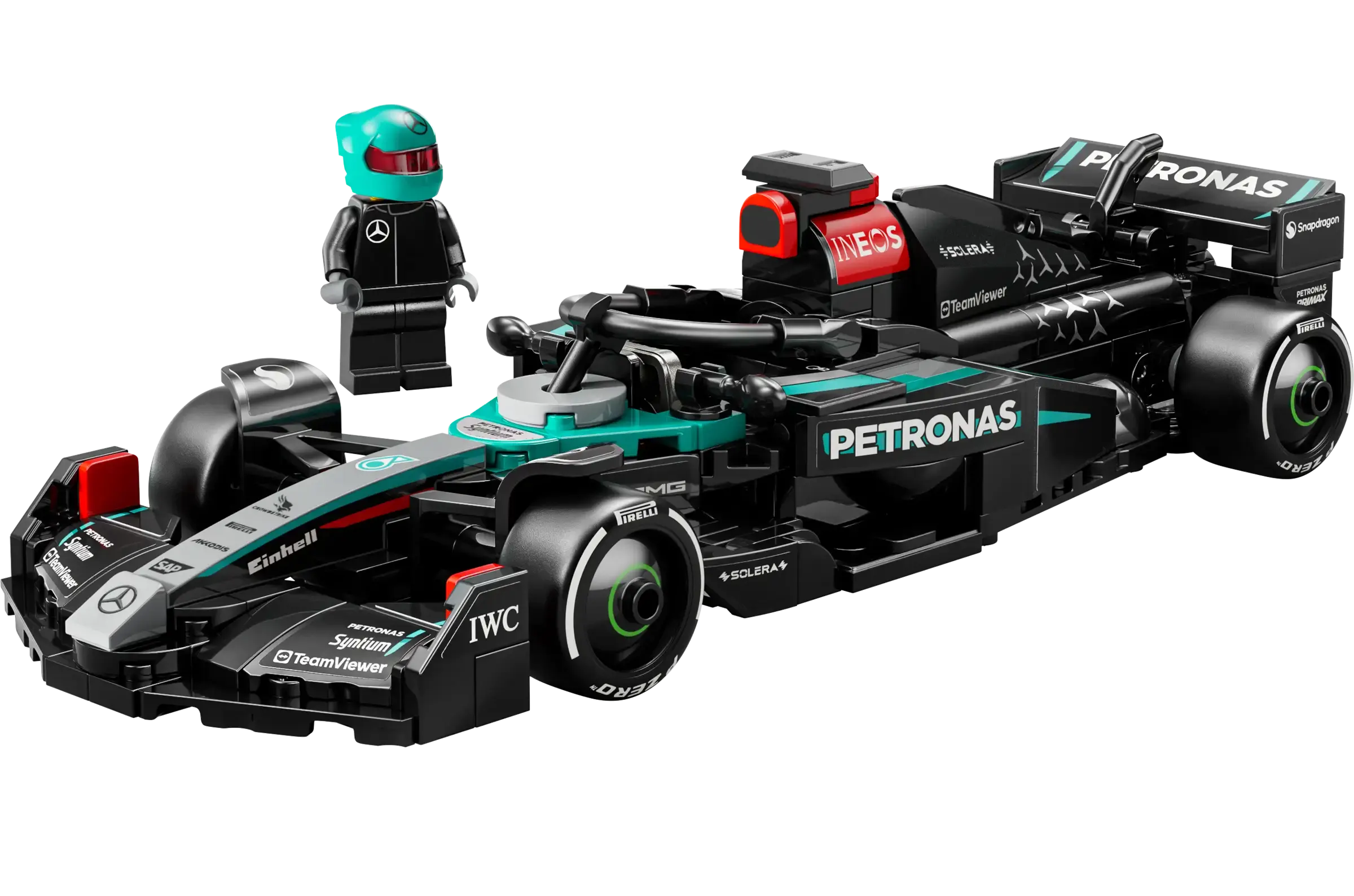 • 1 μίνιφιγούρα οδηγού – Αυτό το σετ παιχνιδιού αυτοκινήτου περιλαμβάνει μια μίνιφιγούρα οδηγού με στολή Mercedes-AMG PETRONAS F1® Team και κράνος με φτερά για να τοποθετηθεί στο κόκπιτ για ρόλους αγωνιστικής δράσης