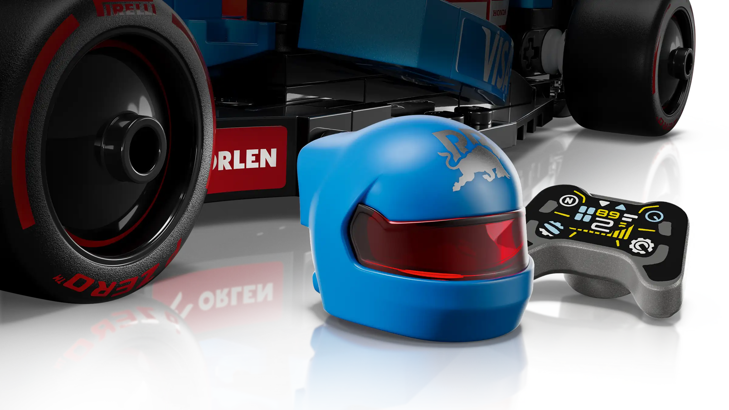 • 1 φιγούρα – Το κιτ οχήματος περιλαμβάνει μια φιγούρα οδηγού με στολή RB και κράνος με φτερά για να τοποθετηθεί στο κόκπιτ του αγωνιστικού αυτοκινήτου F1®