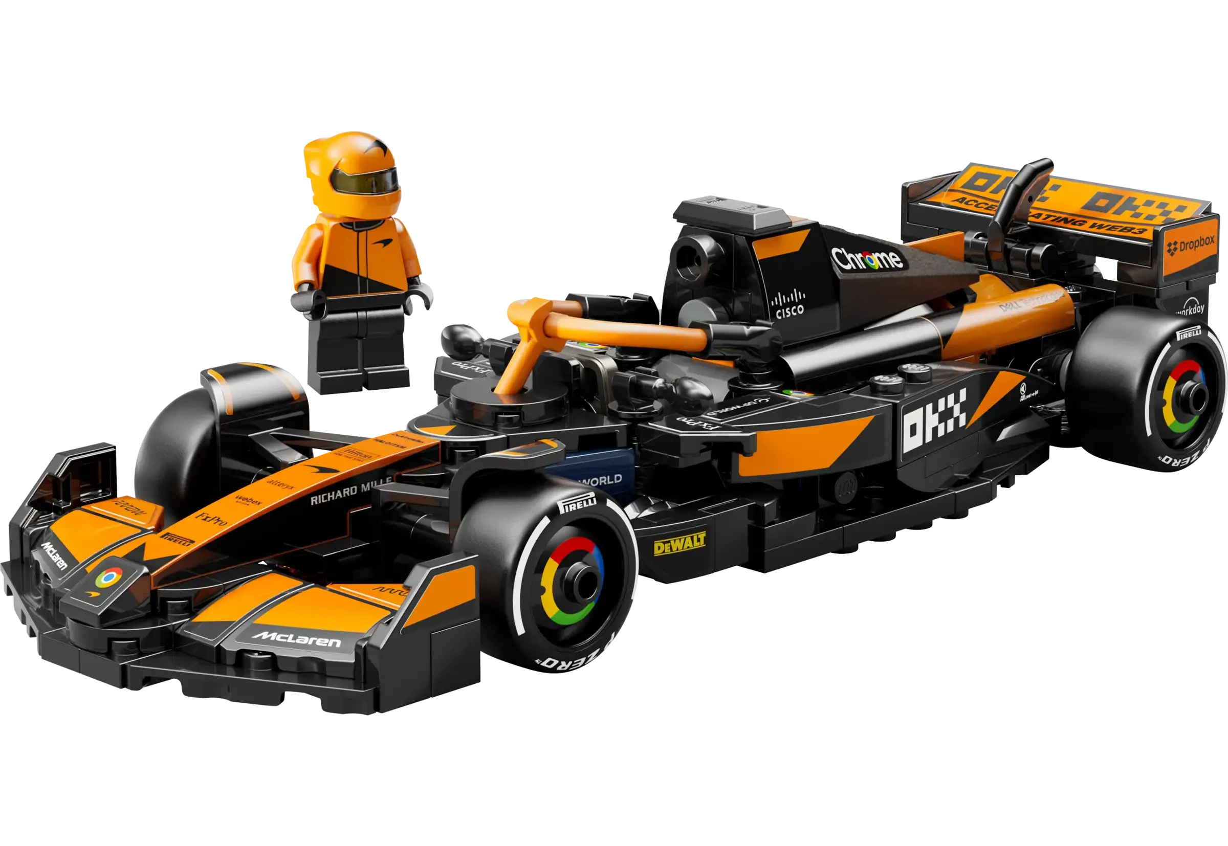 • Αυθεντικές λεπτομέρειες McLaren F1® Team – Ένα αυτοκίνητο McLaren F1 με λεπτομέρειες από την πραγματική έκδοση του 2024, συμπεριλαμβανομένης της μπάρας halo, πίσω φτερού, αυτοκόλλητων χορηγών και φαρδύτερων πίσω ελαστικών με την επιγραφή «Pirelli»