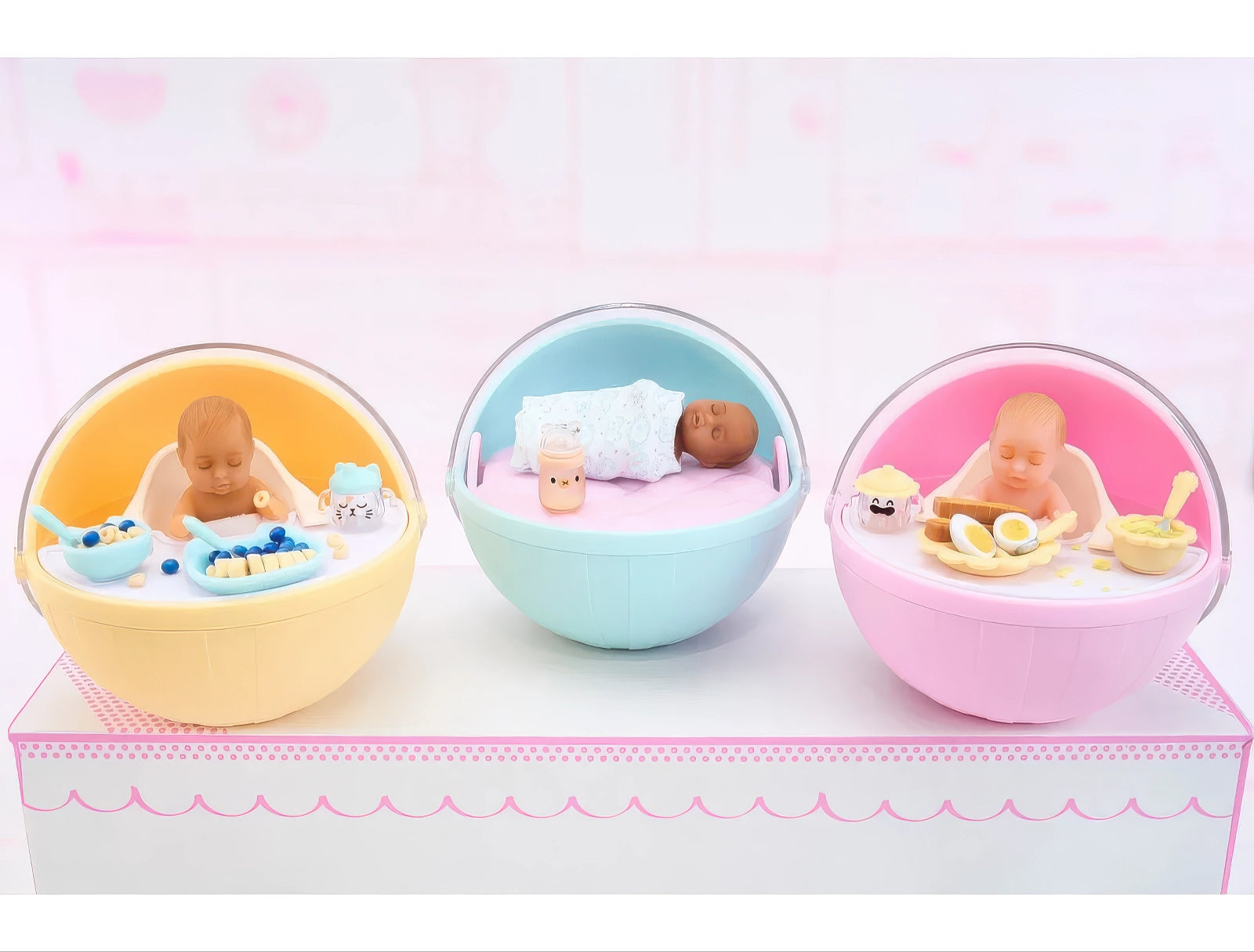 Κάθε κάψουλα μετατρέπεται είτε σε σταθμό σίτισης είτε σε κούνια για το μίνι μωρό σας - ιδανικό για να παρουσιάσετε τις δημιουργίες σας και να νανουρίσετε το μικρό σας μετά το γεύμα. Από μικρά μπολ ανάμειξης μέχρι χαριτωμένα εργαλεία κουζίνας, δημιουργήστε το δικό σας σετ σίτισης μωρού με πολλά μικροσκοπικά αξεσουάρ. Δημιουργήστε ολόκληρο βρεφικό δωμάτιο γεμάτο φροντίδα και διασκέδαση!