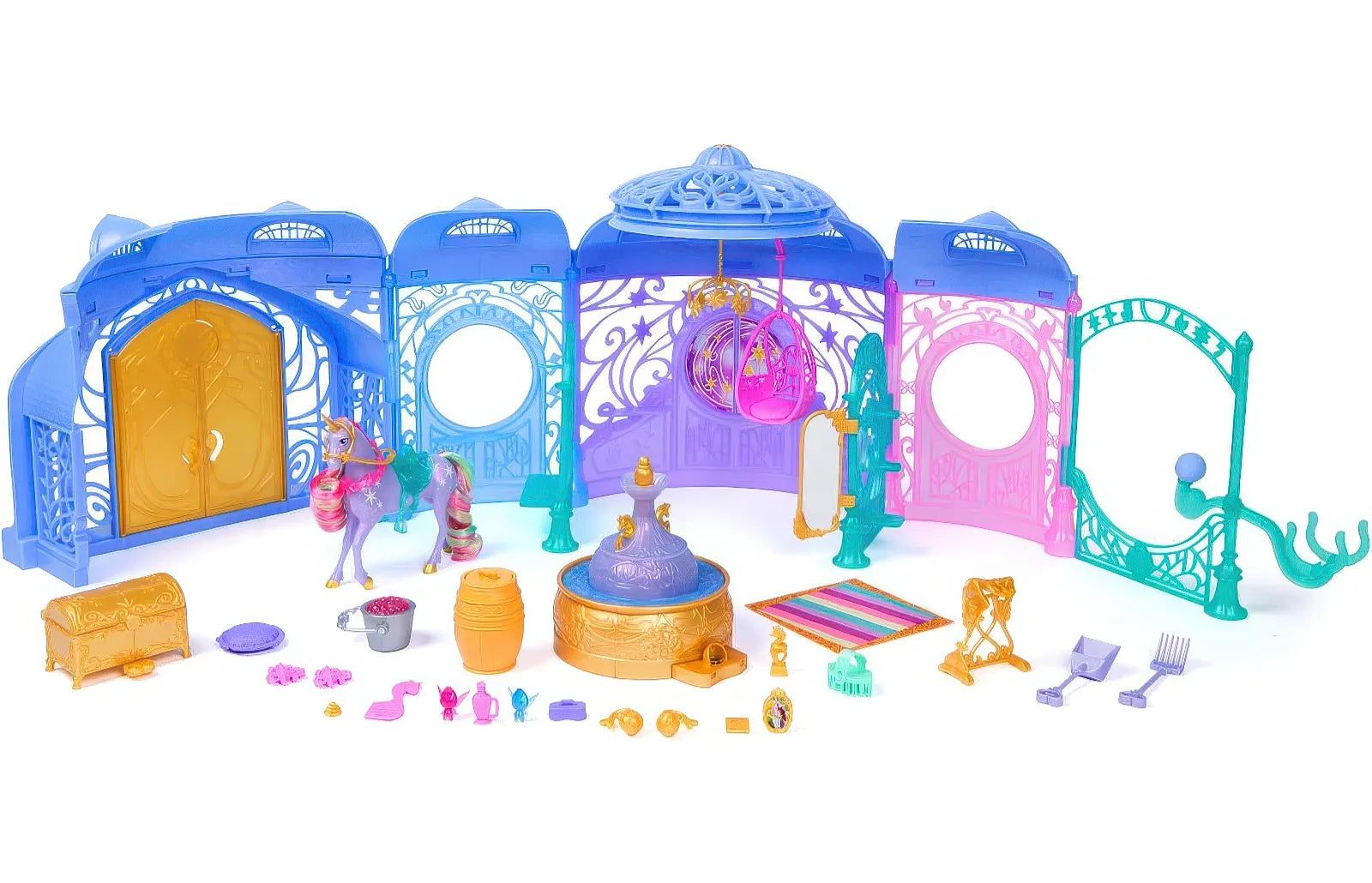 • Στάβλος μονόκερων: Βασισμένο στη δημοφιλή σειρά NETFLIX και τα πιο πολυαγορασμένα παιδικά βιβλία, αυτό το σετ παιχνιδιού ζωντανεύει τους στάβλους των μονόκερων, με φωτιζόμενο συντριβάνι, αποκλειστική φιγούρα Wildstar 13 εκ. και 24 αξεσουάρ.