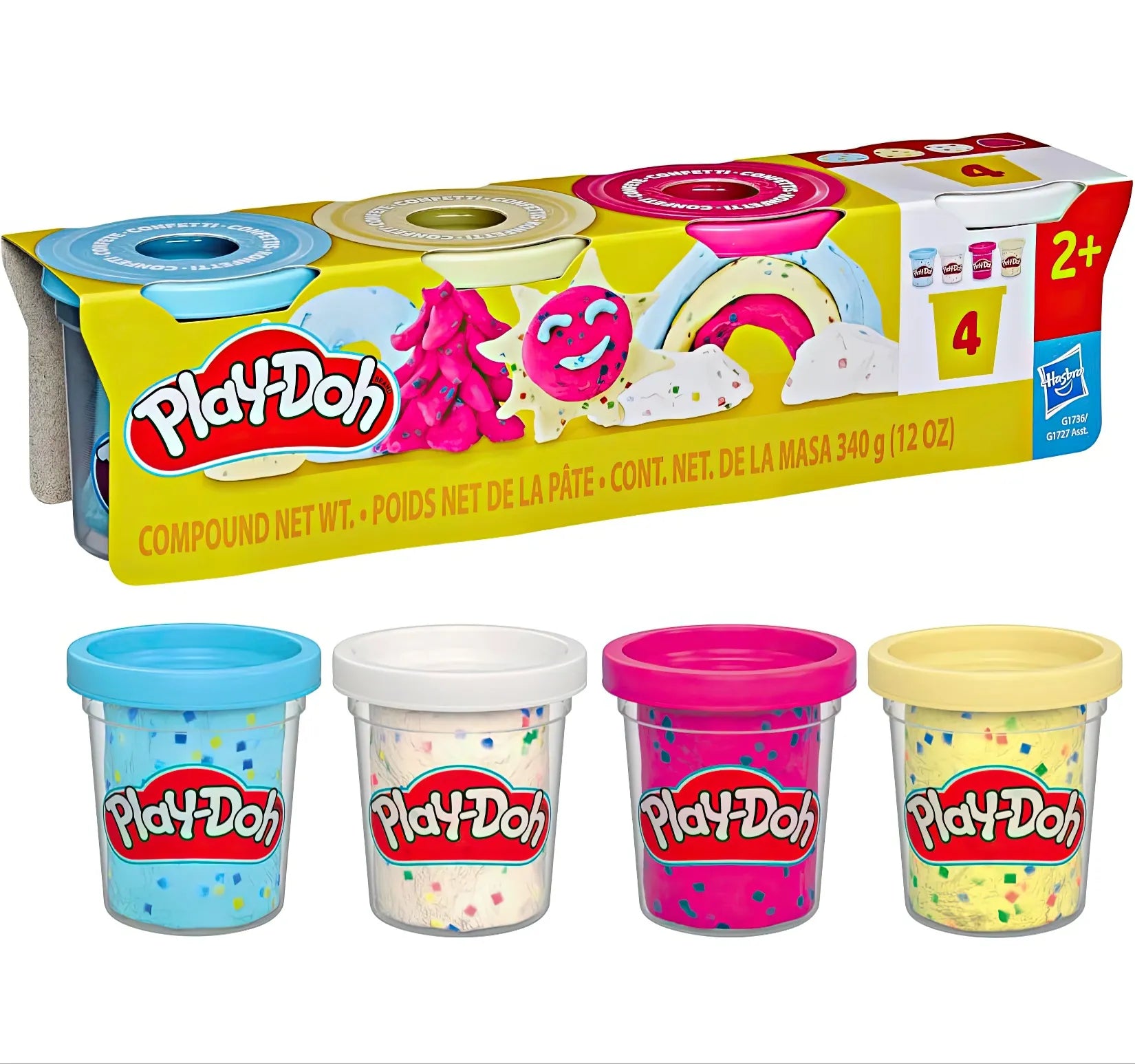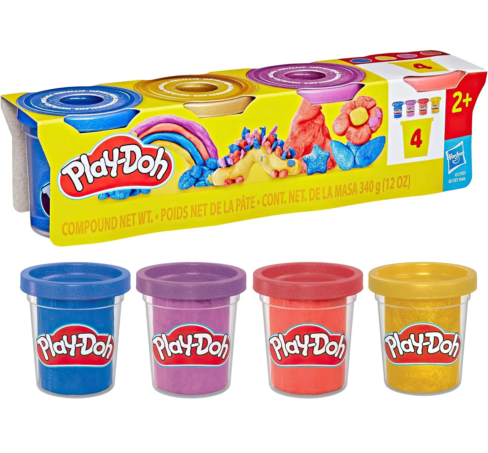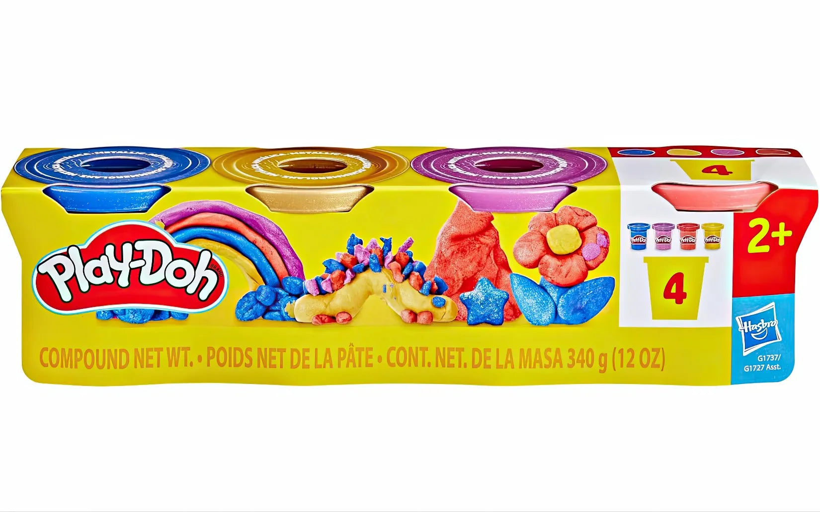 • 🎁 Περιλαμβάνει 4 μεγάλες συσκευασίες Play-Doh των 85γρ