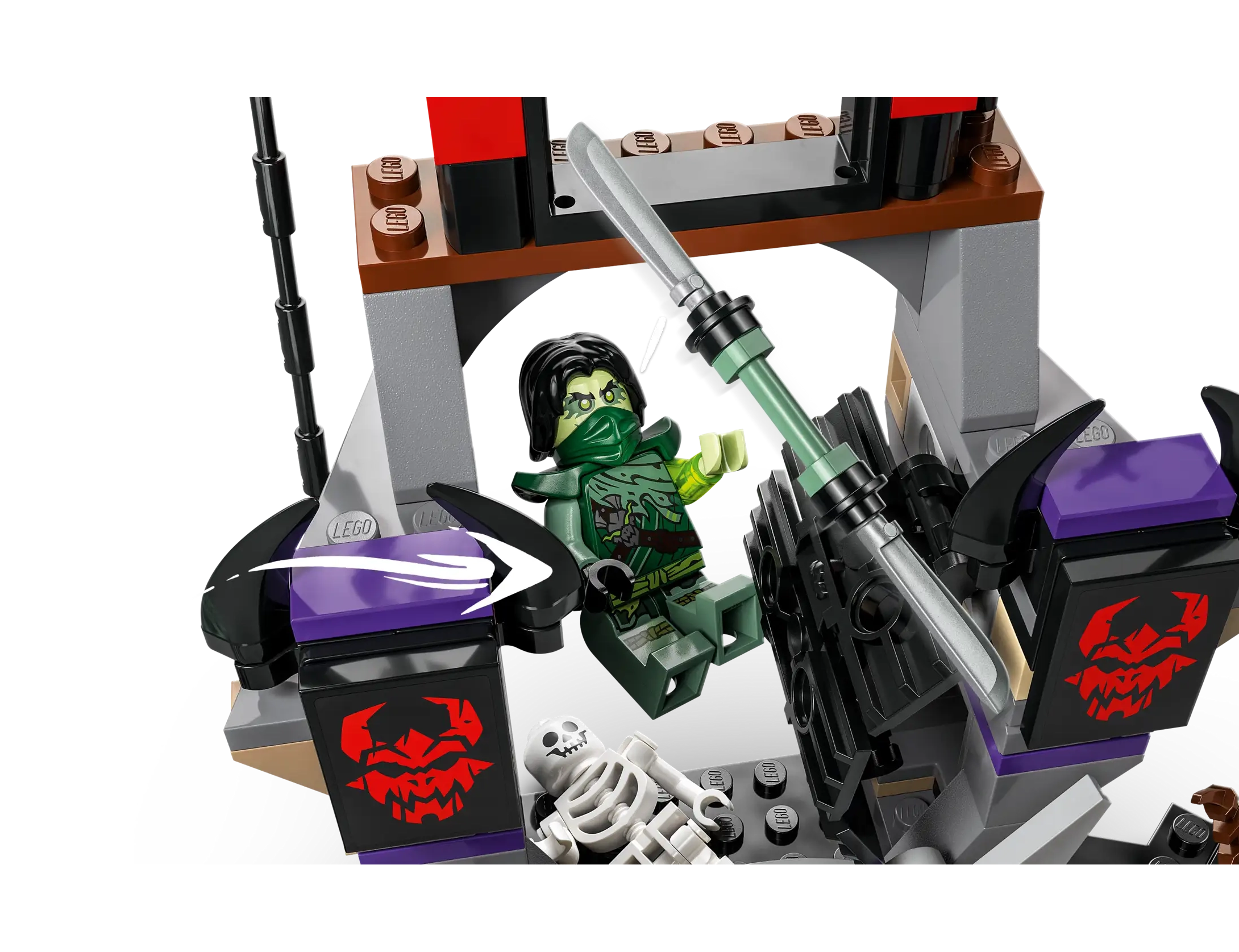 • Διαδραστικό παιχνίδι ninja – Περιλαμβάνει κλουβί για να κρατά τους χαρακτήρες ninja, αναδιπλούμενη γέφυρα και λάκκο με σκελετό για να πέσει ο ninja
