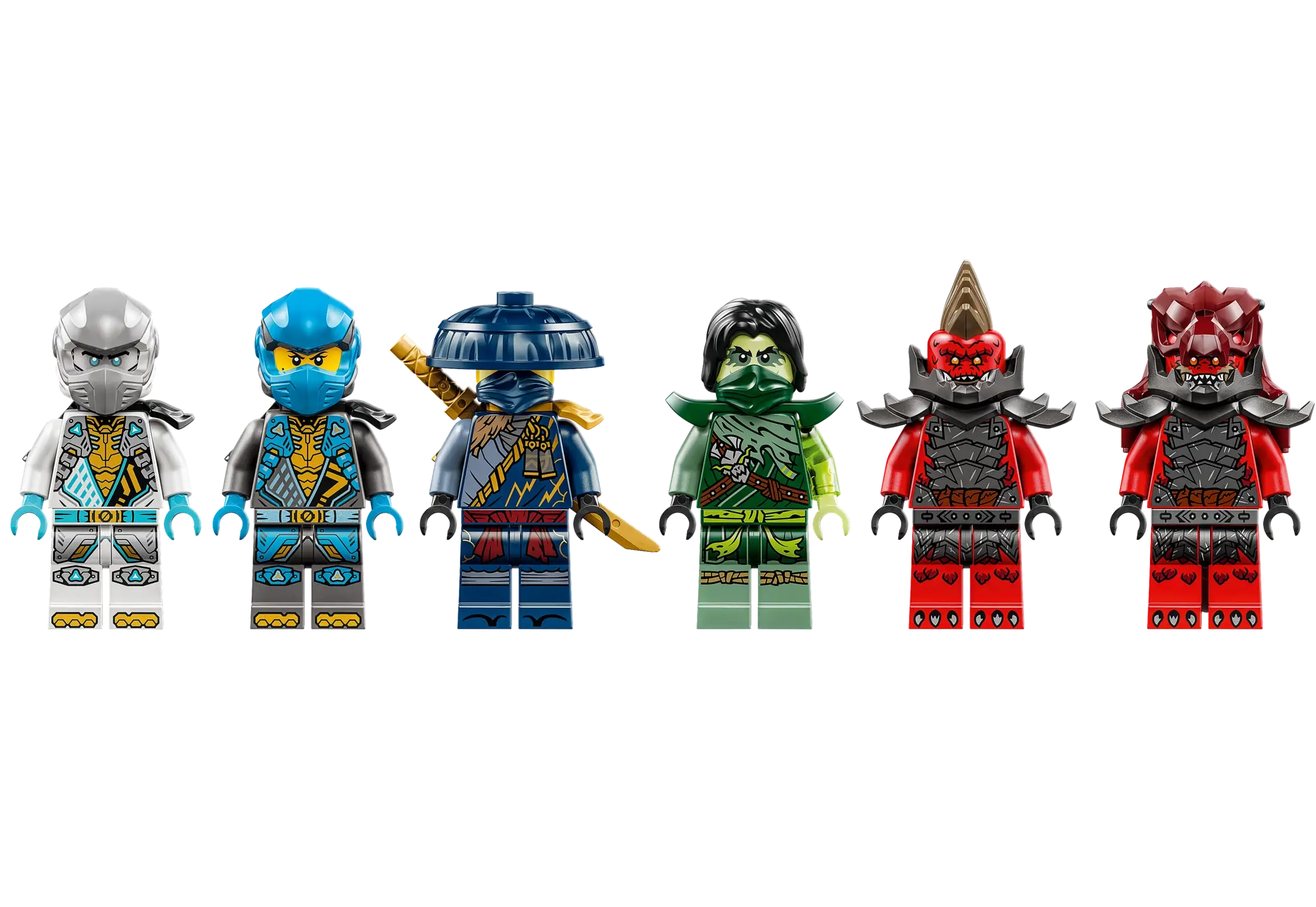 Το σετ δράσης περιλαμβάνει επίσης 6 φιγούρες LEGO® NINJAGO: Zane, Nya, έναν πρωτοεμφανιζόμενο Rogue και έναν πρωτοεμφανιζόμενο Morro αποκλειστικό για αυτό το σετ. Υπάρχει επίσης ένας Dragonian Warrior και ένας Dragonian Scout, όλοι εξοπλισμένοι με δροσερά όπλα ninja για να ζωντανέψουν τις περιπέτειες ninja.
