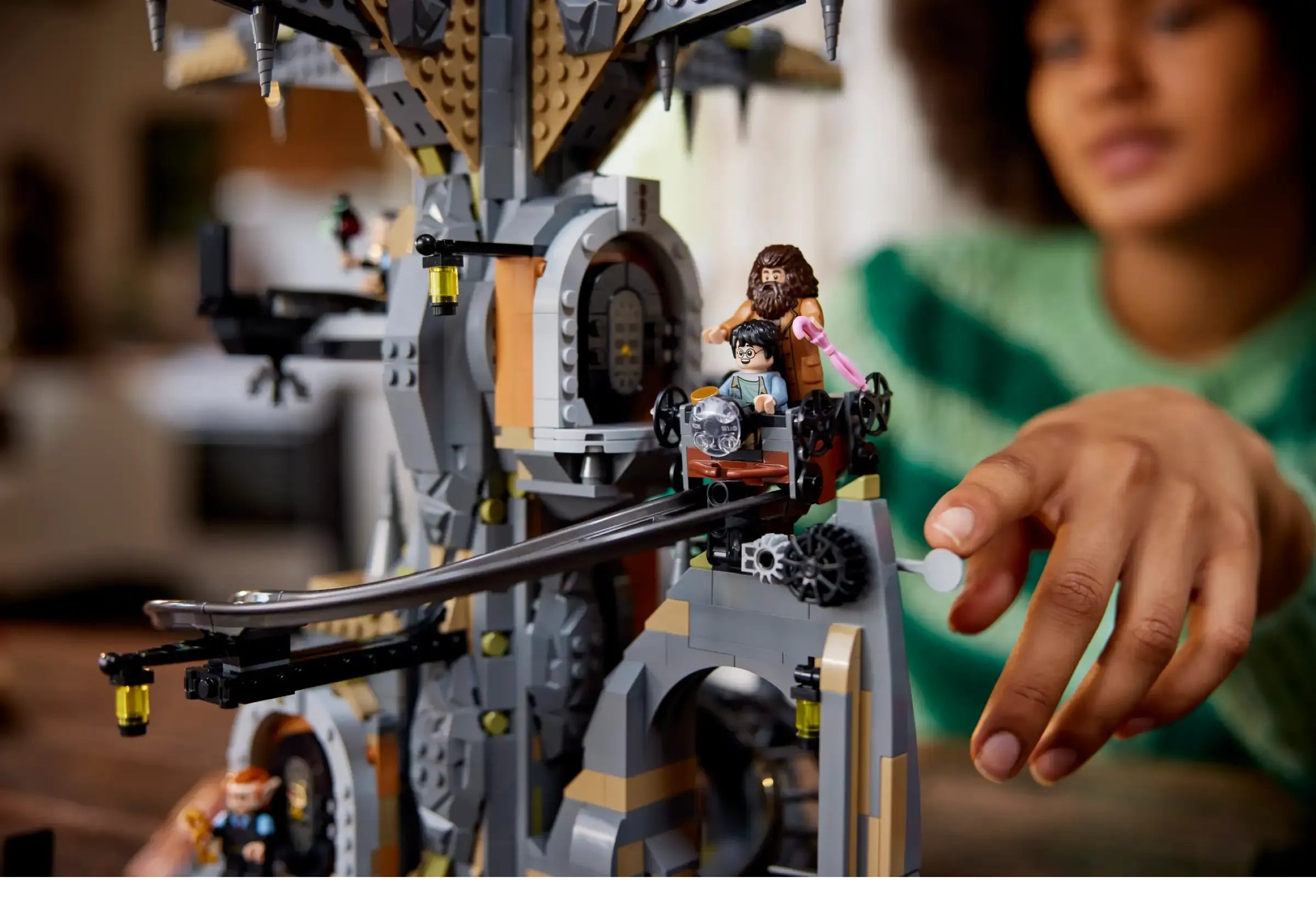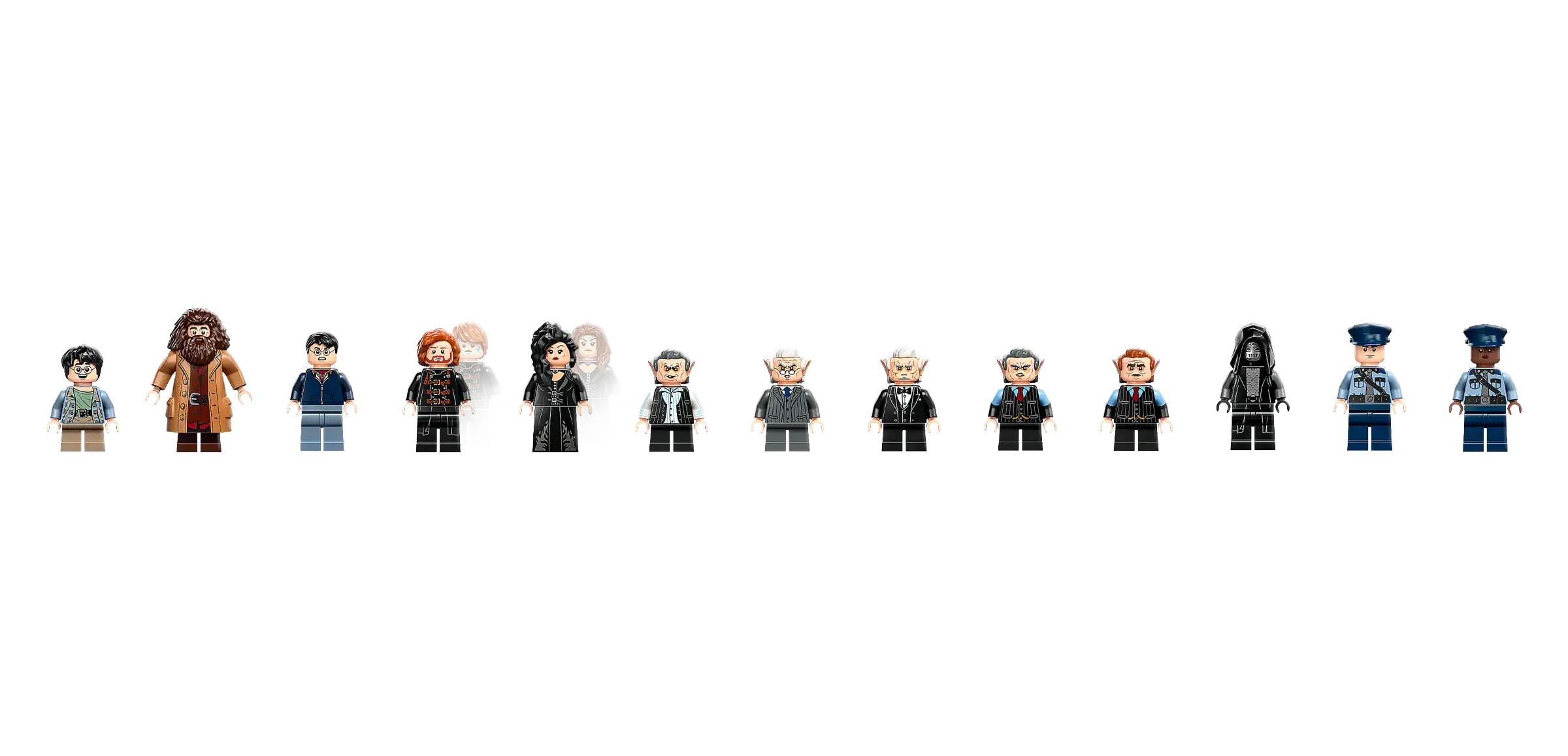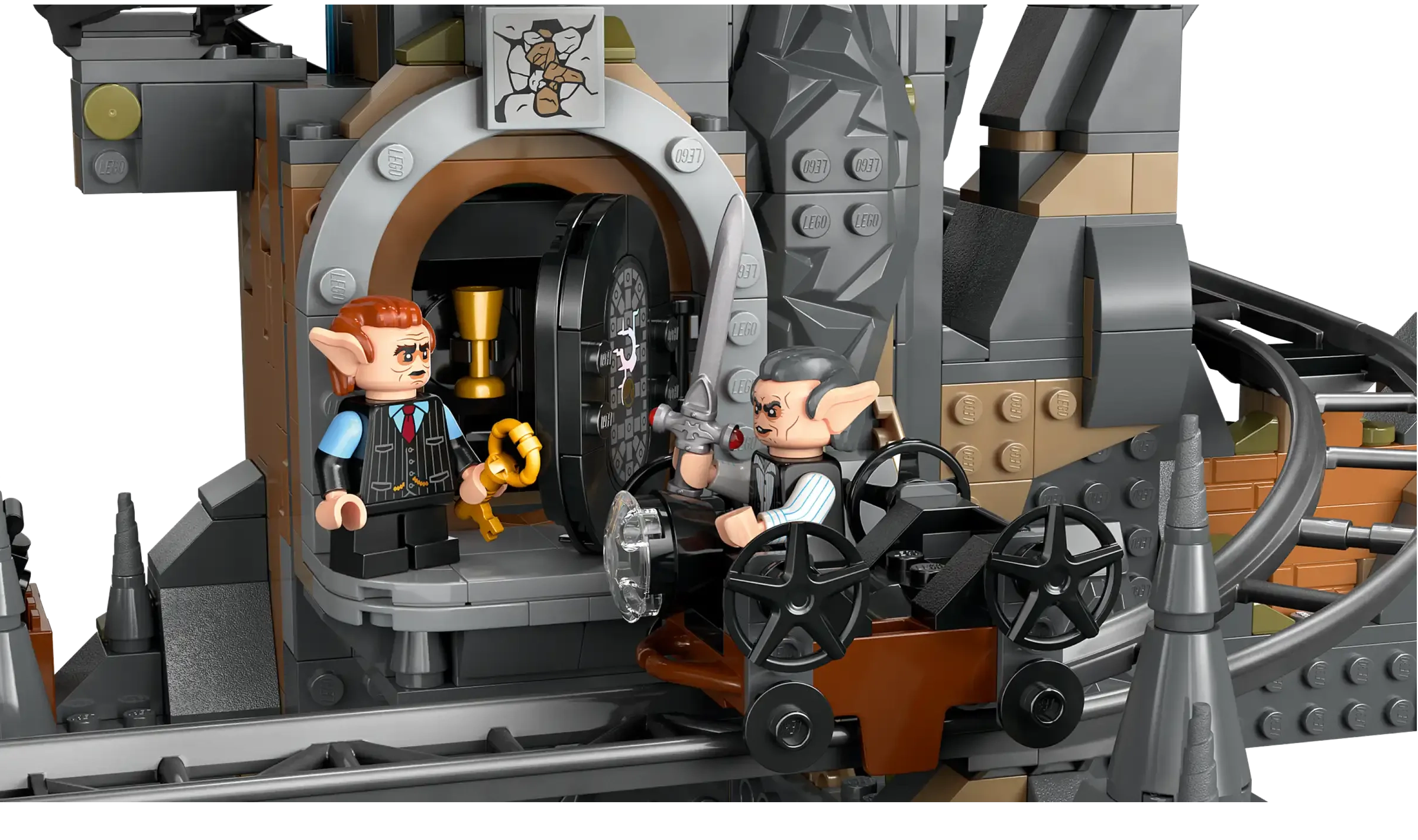 • 13 μινιφιγούρες LEGO® – 2 μινιφιγούρες Harry Potter™, Ron Weasley™, Bellatrix Lestrange /Hermione Granger™, Rubeus Hagrid™, Death Eater™, Bogrod, Griphook, Ricbert, 2 γκόμπλιν και 2 φρουροί