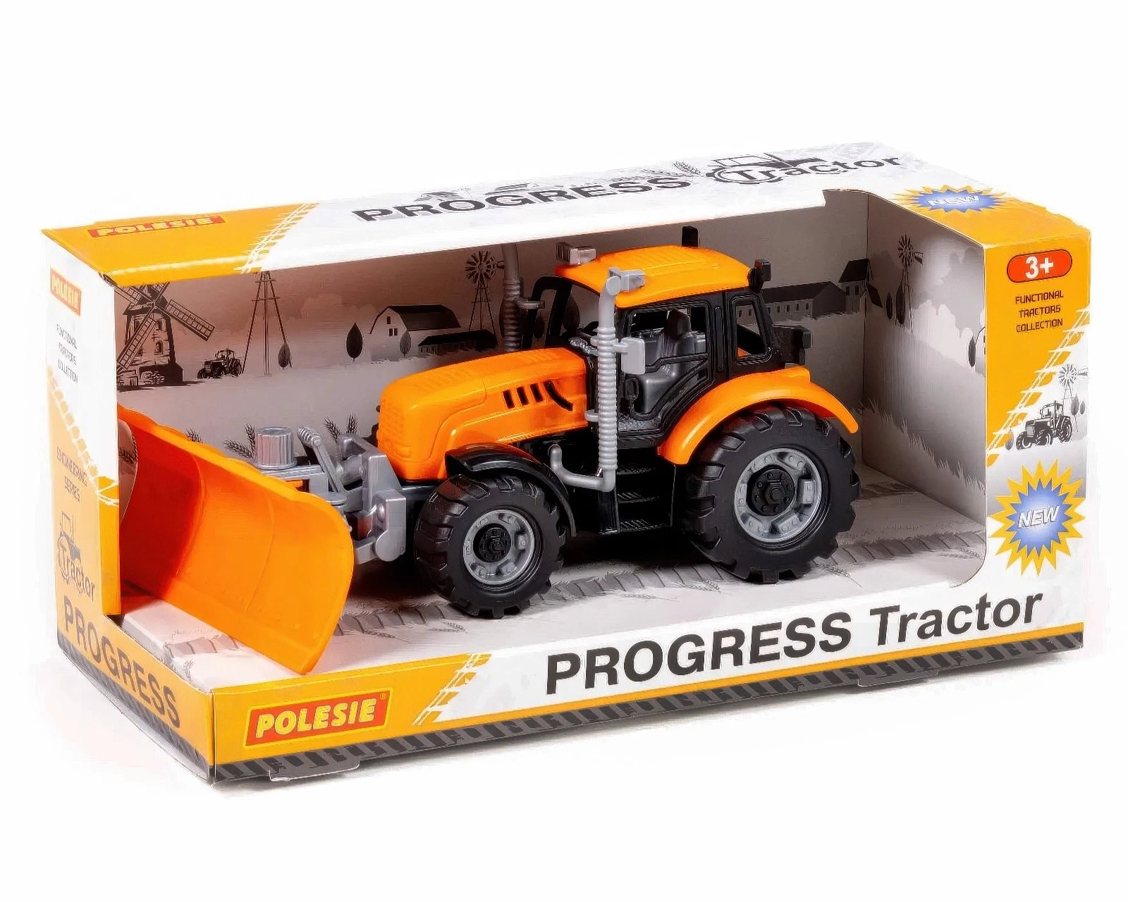 🚜 PROGRESS Friction-Powered Blade Tractor – Orange | Polesie Engineering Series