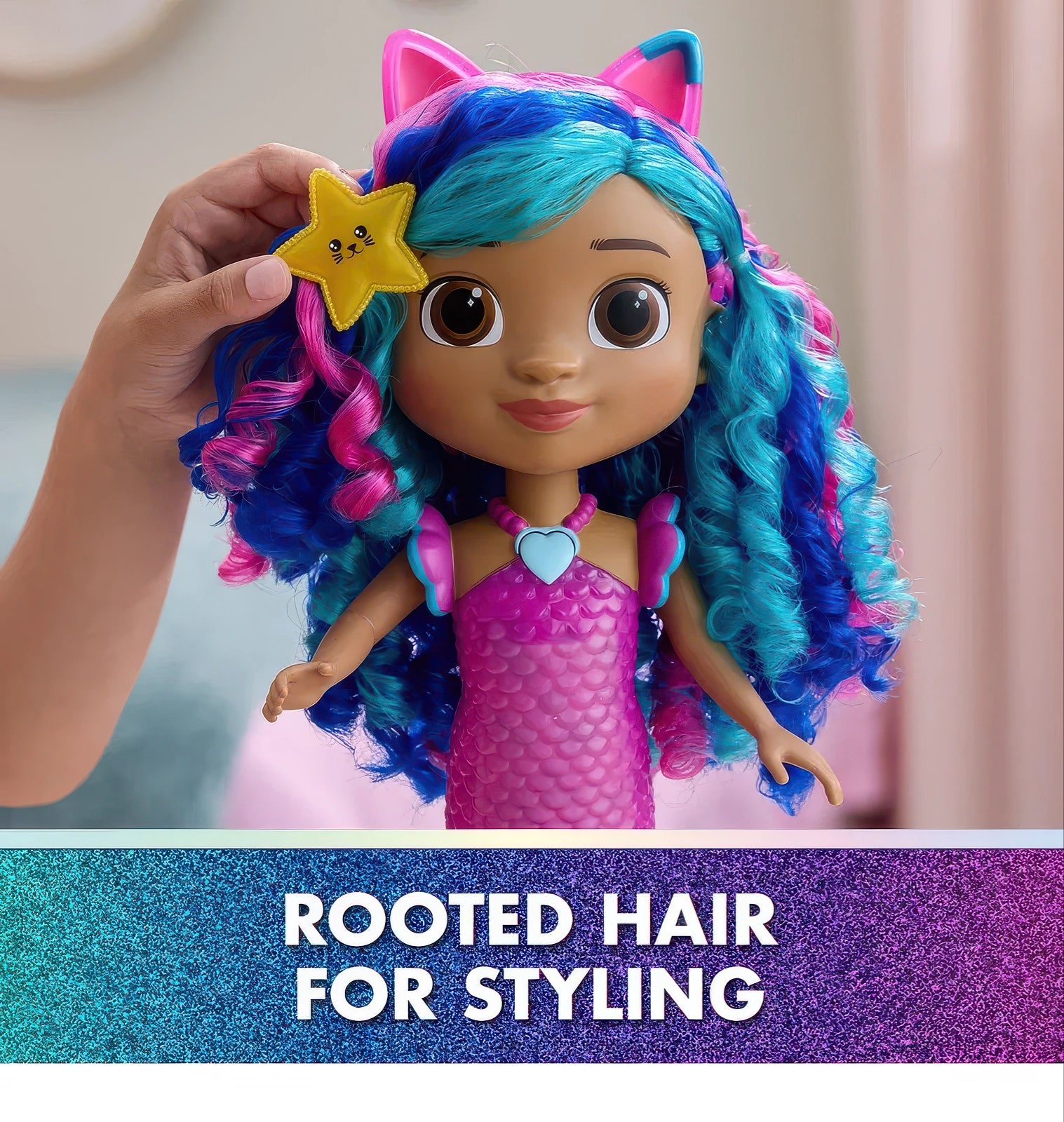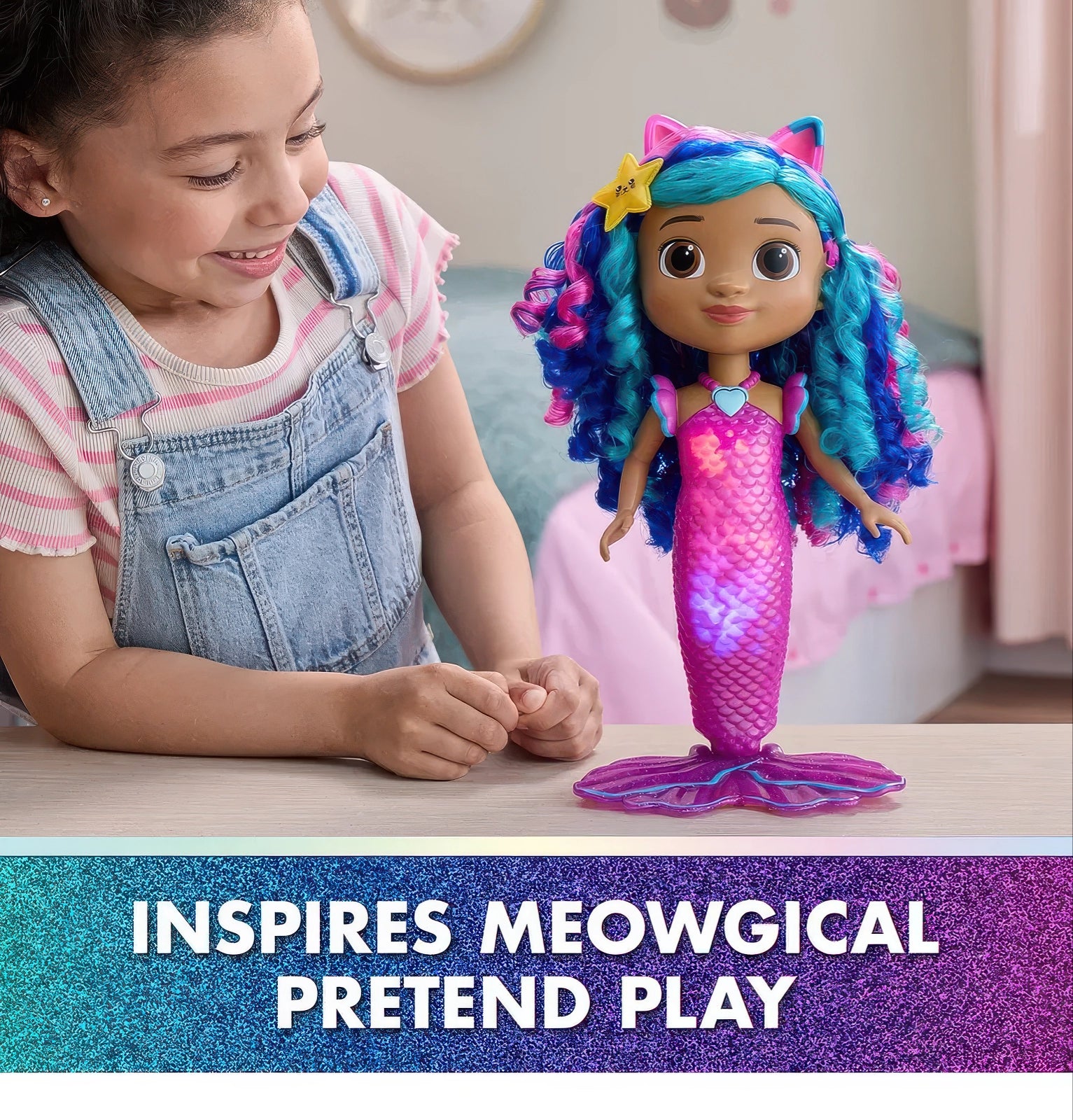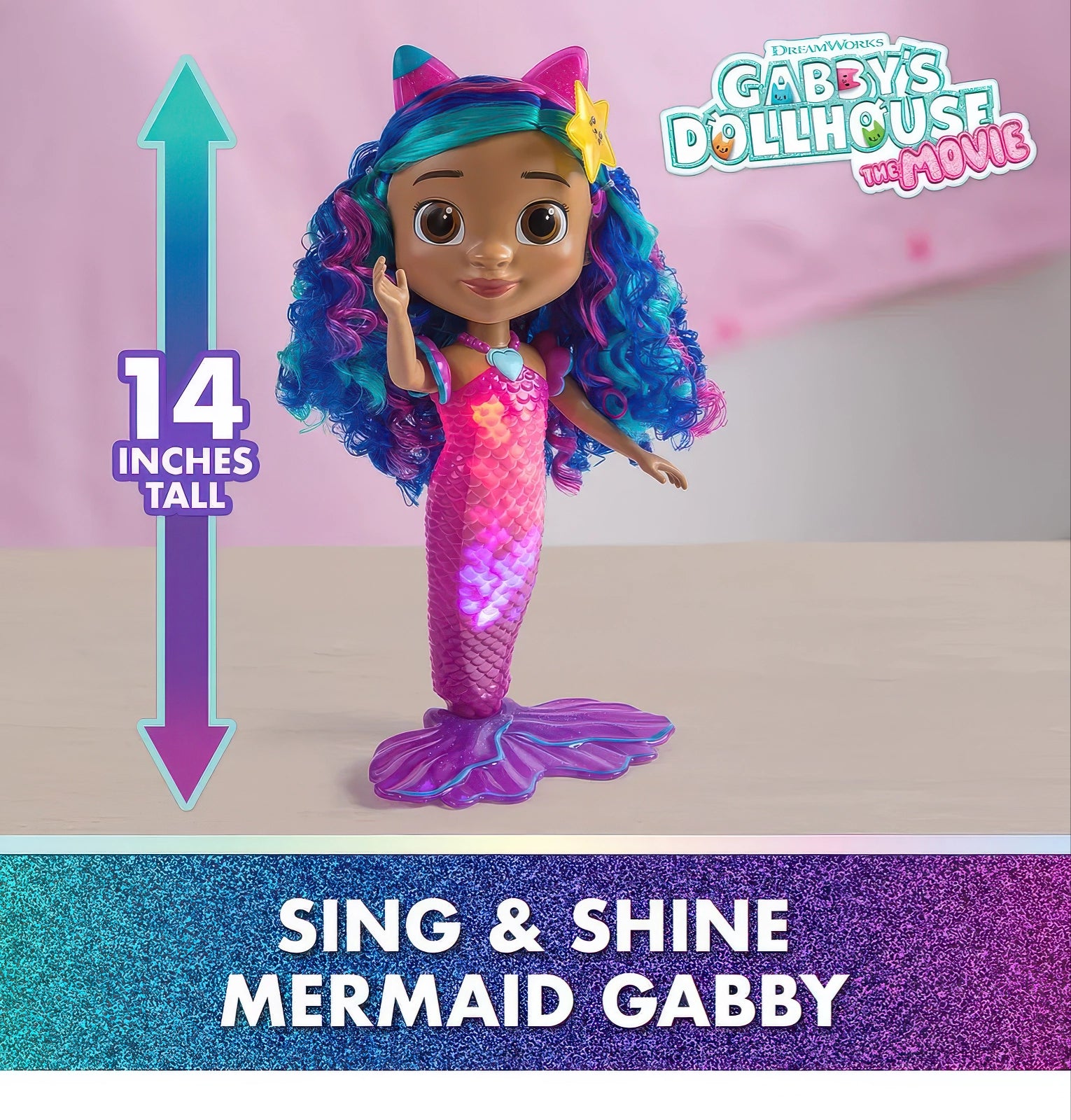 Transform playtime into a magical underwater adventure with Gabby's Dollhouse Sing & Shine Mermaid Doll – where imagination meets innovation in every splash and song.