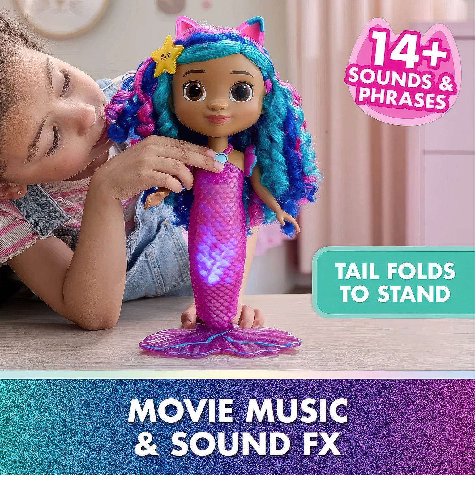 Bring the enchantment of Gabby's Dollhouse: The Movie directly into your child's playroom with this spectacular 35cm Sing & Shine Mermaid Gabby doll. This premium collectible combines interactive technology with imaginative play, creating an unforgettable experience that will captivate young dreamers for hours on end.