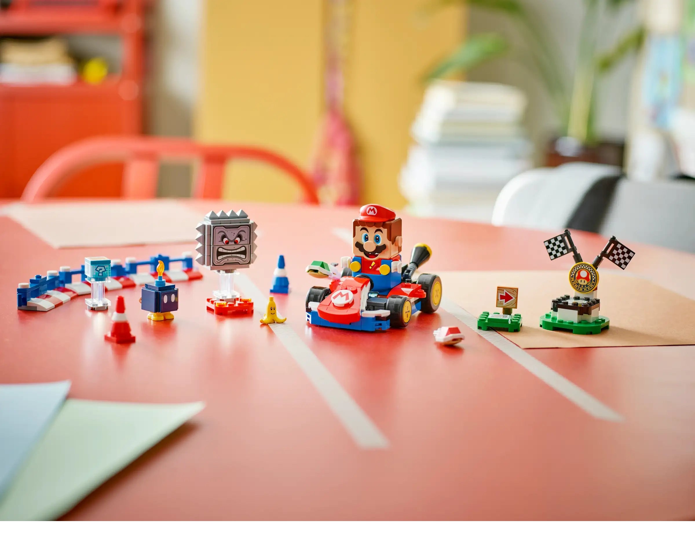 • Brick-built Mario Kart™ toy playset for kids – Create a fun-packed LEGO® Super Mario™ course for interactive races with LEGO® Mario™ in his Standard Kart with this Nintendo® LEGO set