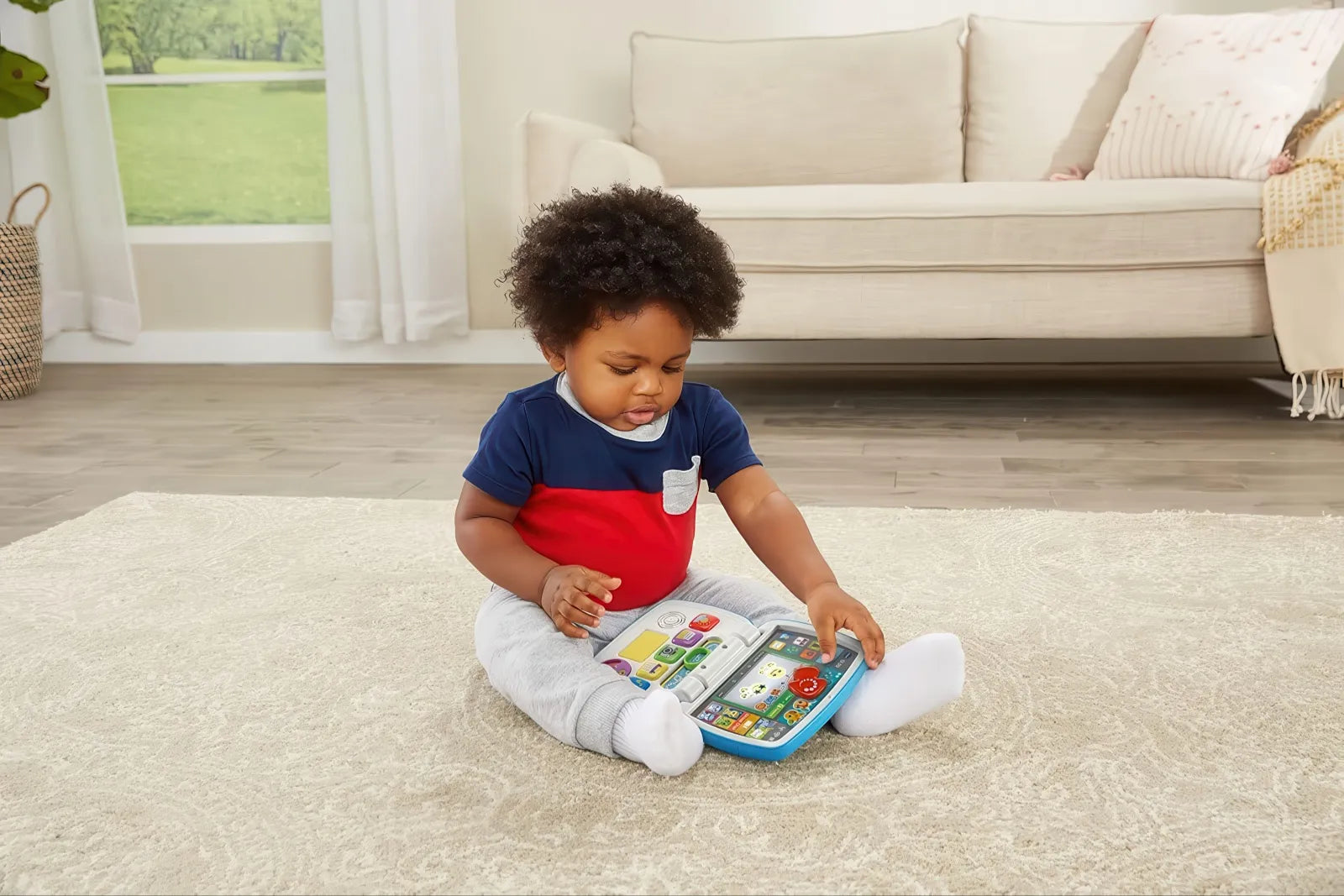 With 6 colourful buttons featuring themes such as weather, calendar, music, camera, mail, and even a cheeky tiger, each press delivers cheerful sounds, phrases, and light-up effects that keep children captivated. The laptop also includes fun manipulatives like a spinning fingerprint disc and a slide-along red cursor – just like a real computer, but sized perfectly for tiny hands!