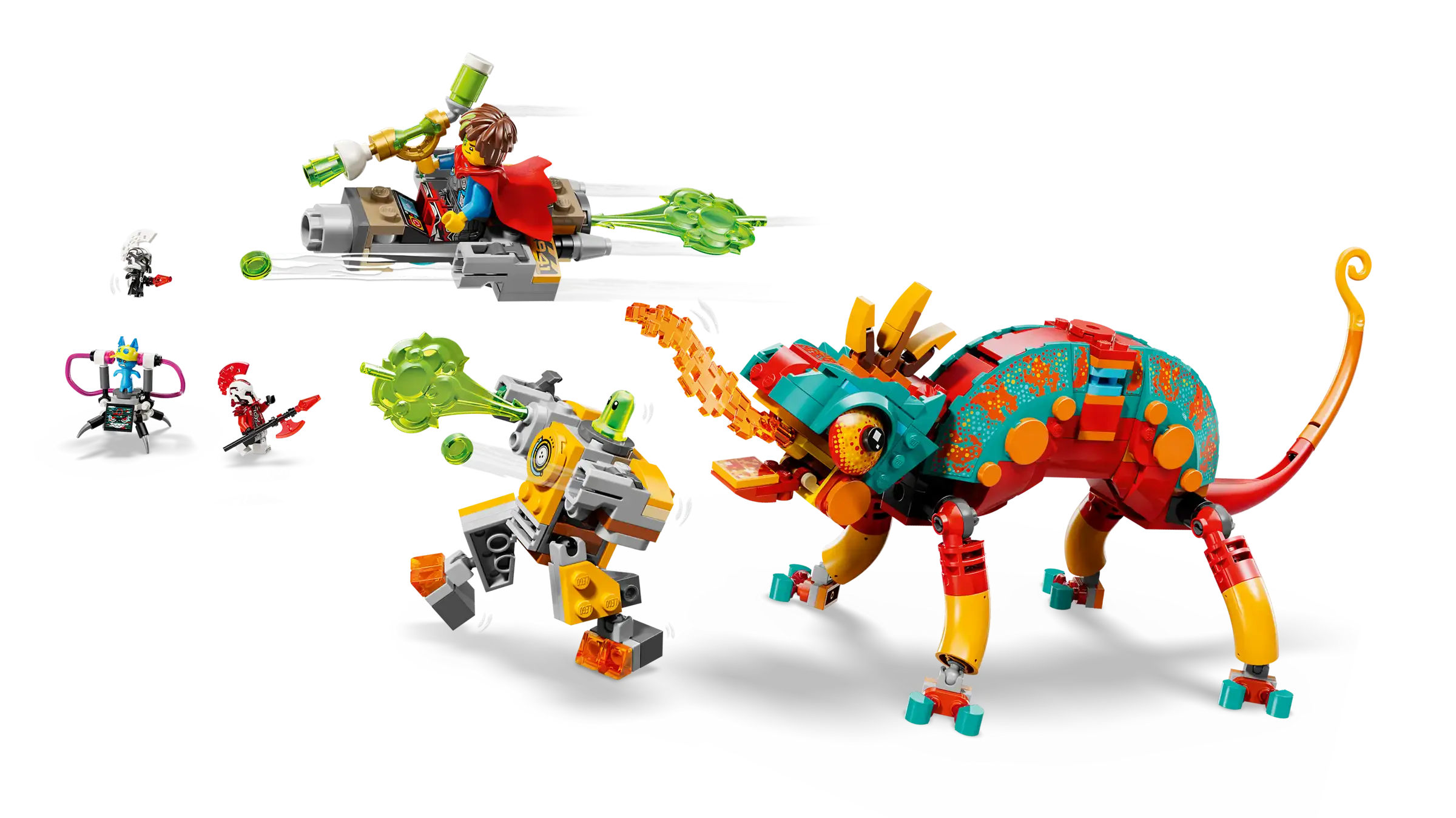Young dreamers will have fun building a chameleon figure before discovering 2 ways to transform it – they can build it as a fire chameleon guardian with a mounted blaster turret and 4 stud shooters or turn it into a speedy jet and mini mech figure. The chameleon toy has a posable mouth, head, tail, eyes and legs and both building options are packed with cool details, including modular boosters that are compatible with other building sets in the LEGO DREAMZzz 2025 range (sold separately). Mateo and Zero minifigures, as well as Logan, Z-Blob and Cyberling figures, bring the story to life and encourage imaginative play.