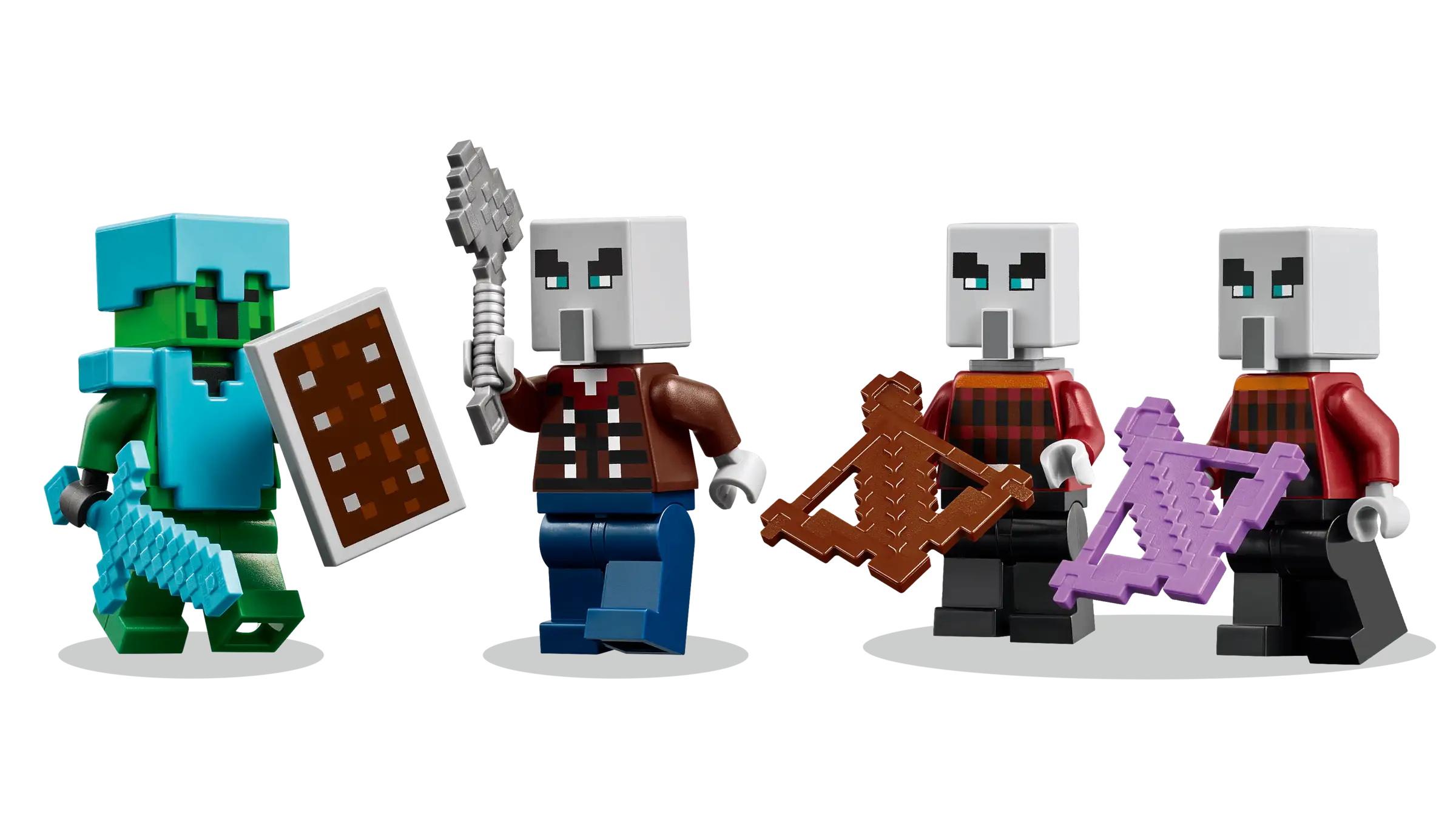 • 4 Minecraft® figures – Includes 3 illagers, 1 hero character and a variety of authentic accessories, including a diamond sword, shield and armour