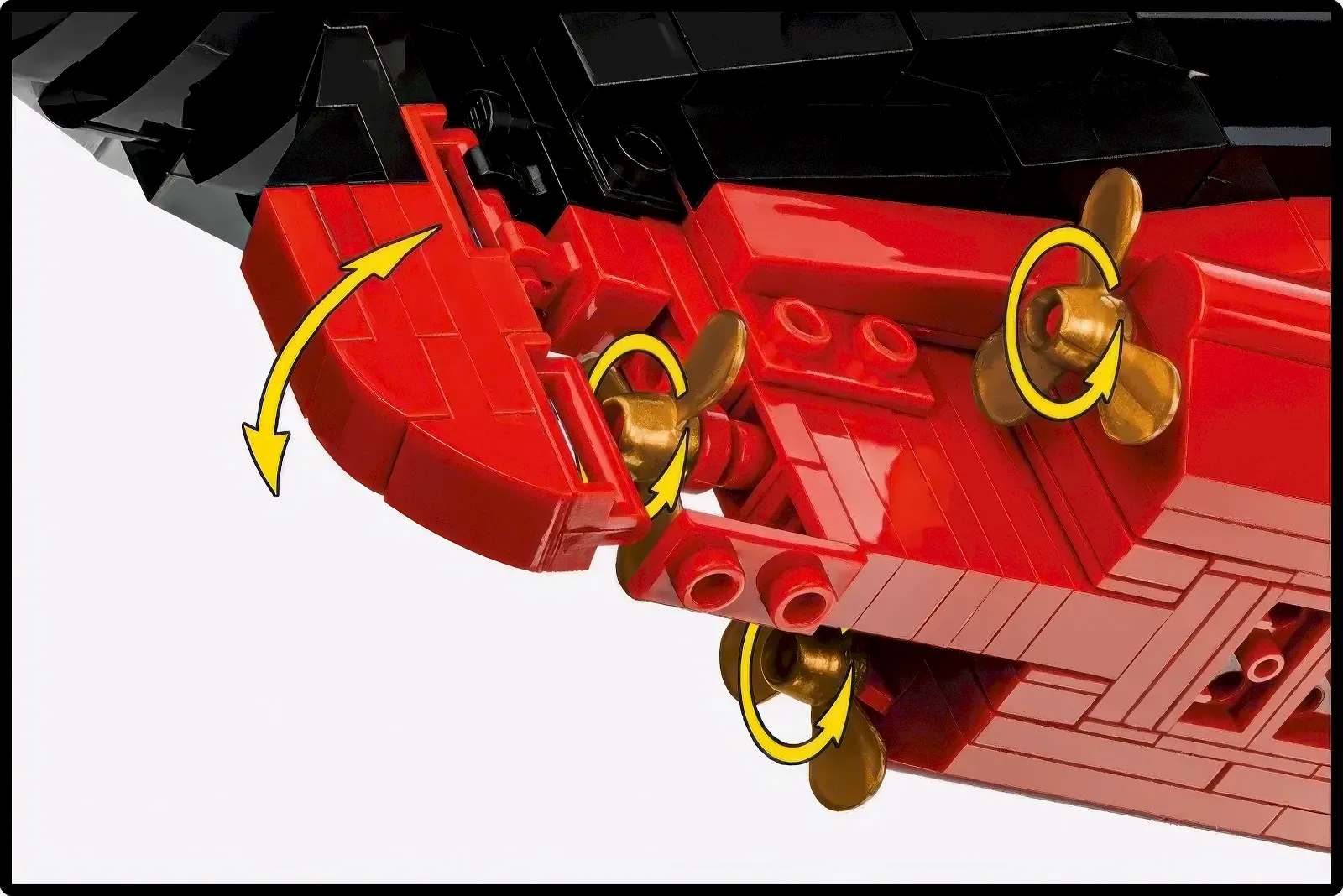 Movable elements – The model features numerous movable elements that add authenticity and allow for even greater interaction. These include propellers and ship cranes.