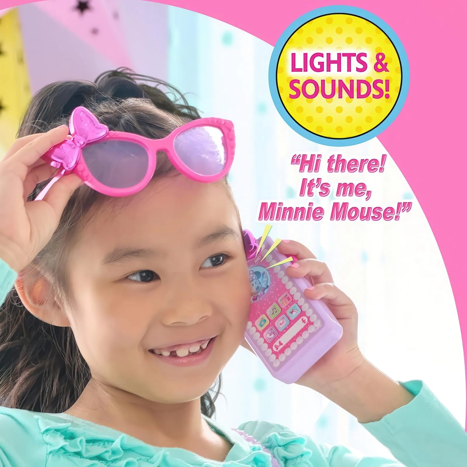 • Realistic Sounds, Fun Phrases: This imaginative preschool toy features an adorable electronic toy cell phone. Press the button to activate the lights and hear cute phrases from Minnie Mouse.