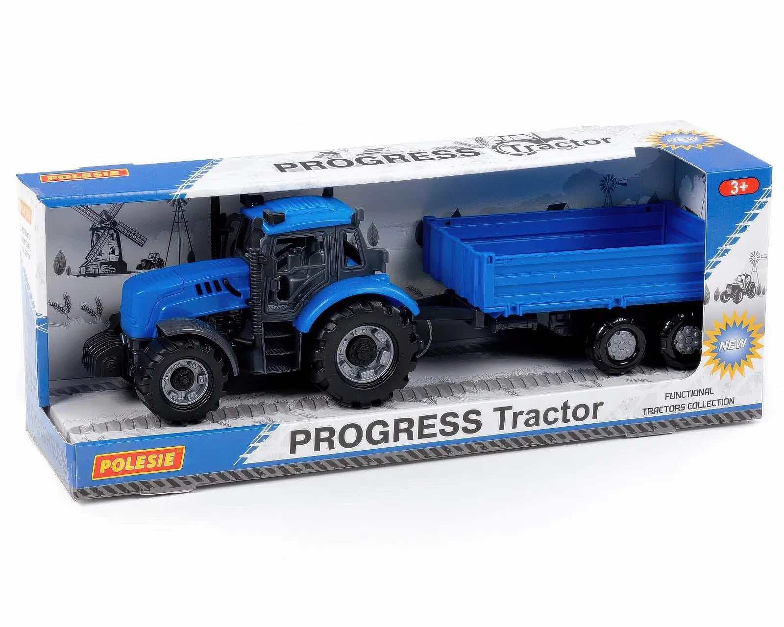 🚜 PROGRESS Friction Powered Drop-Side Trailer Tractor – Blue | Polesie Engineering Series