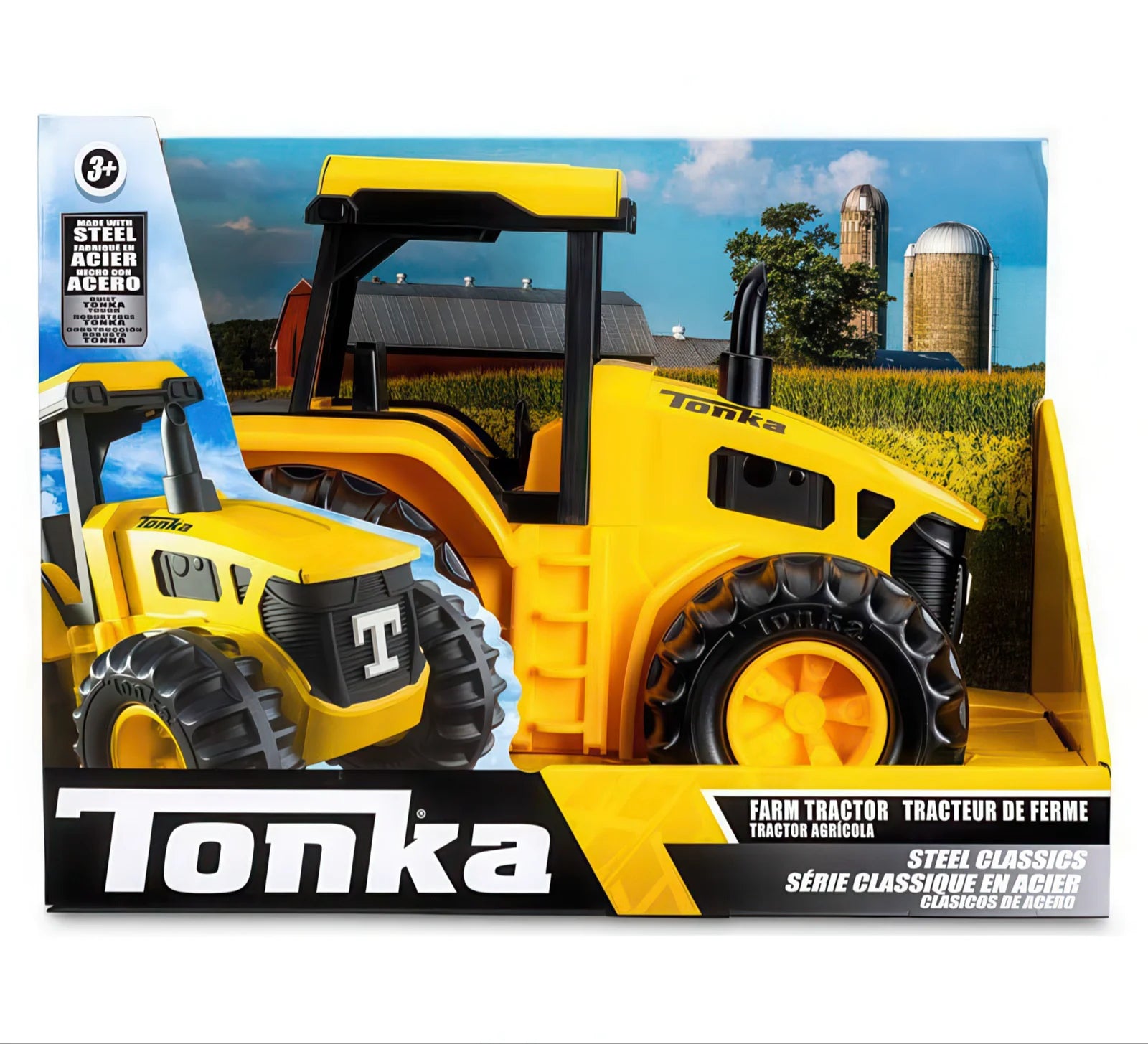 Enjoy a day on the farm from the comfort of your home with the new Tonka Steel Classics Farm Tractor! This classic yellow tractor is TONKA TOUGH and built to last with COLD-ROLLED STEEL. Its sturdy steel construction can withstand the rough-and-tumble play that kids love indoors or outdoors, and its authentic detailing is sure to delight budding farmers and tractor enthusiasts alike.