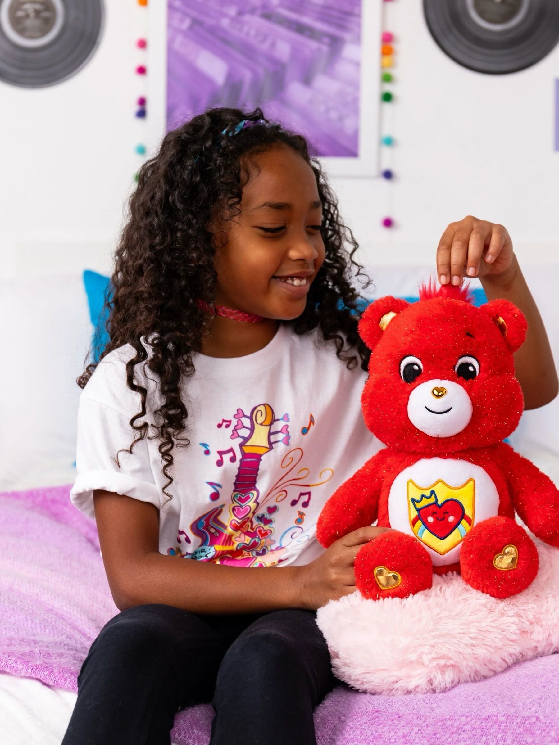 What sets this Destiny Bear apart is its exclusive design created specifically for the UK market. With bold magenta and gold colours and a regal gold-crowned heart belly badge, Destiny Bear commands attention and stands out among other Care Bears.