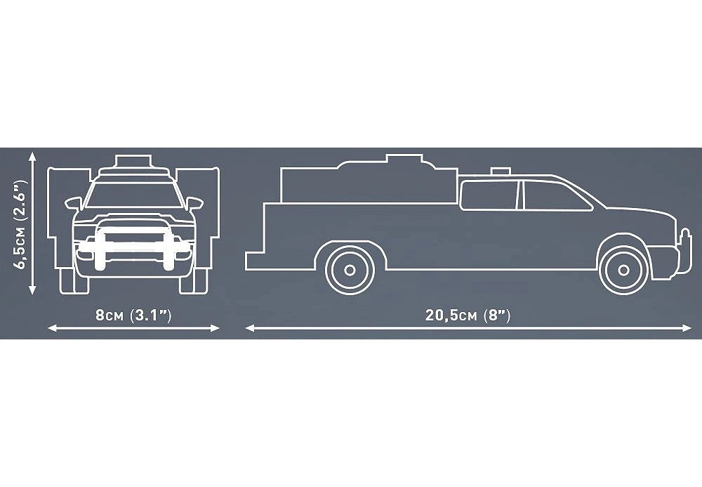 • Model dimensions (length x width x height): 20.5 cm (8”) x 8 cm (3.14”) x 6.5 cm (2.55”)