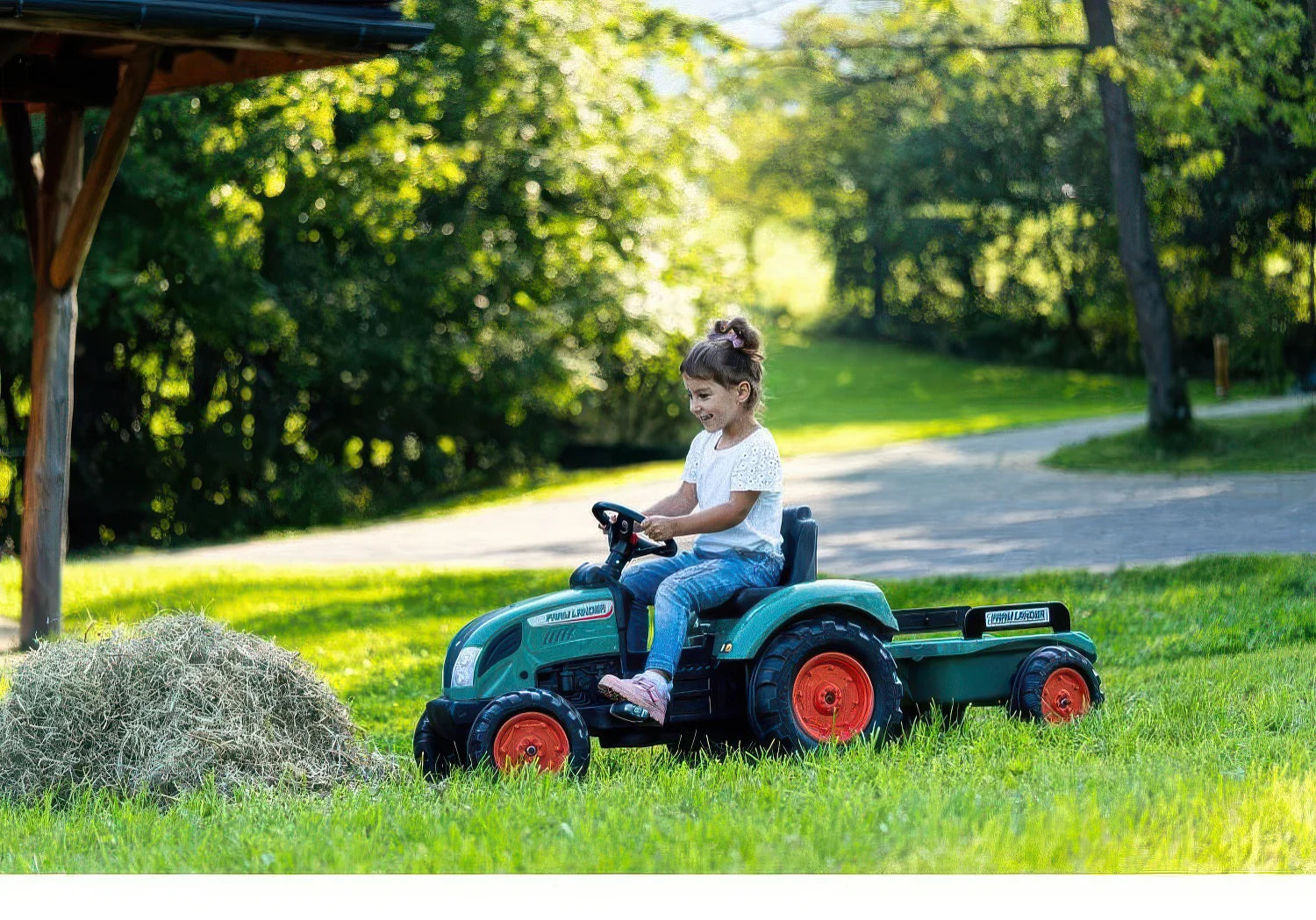 The Falk Pedal Tractor is not just fun—it's a learning tool that enhances motor skills, autonomy, and creativity. With its adjustable steering wheel and horn, it’s easy for children to control, making every outdoor adventure a delight. Plus, kids can make it truly their own by customising the licence plate!