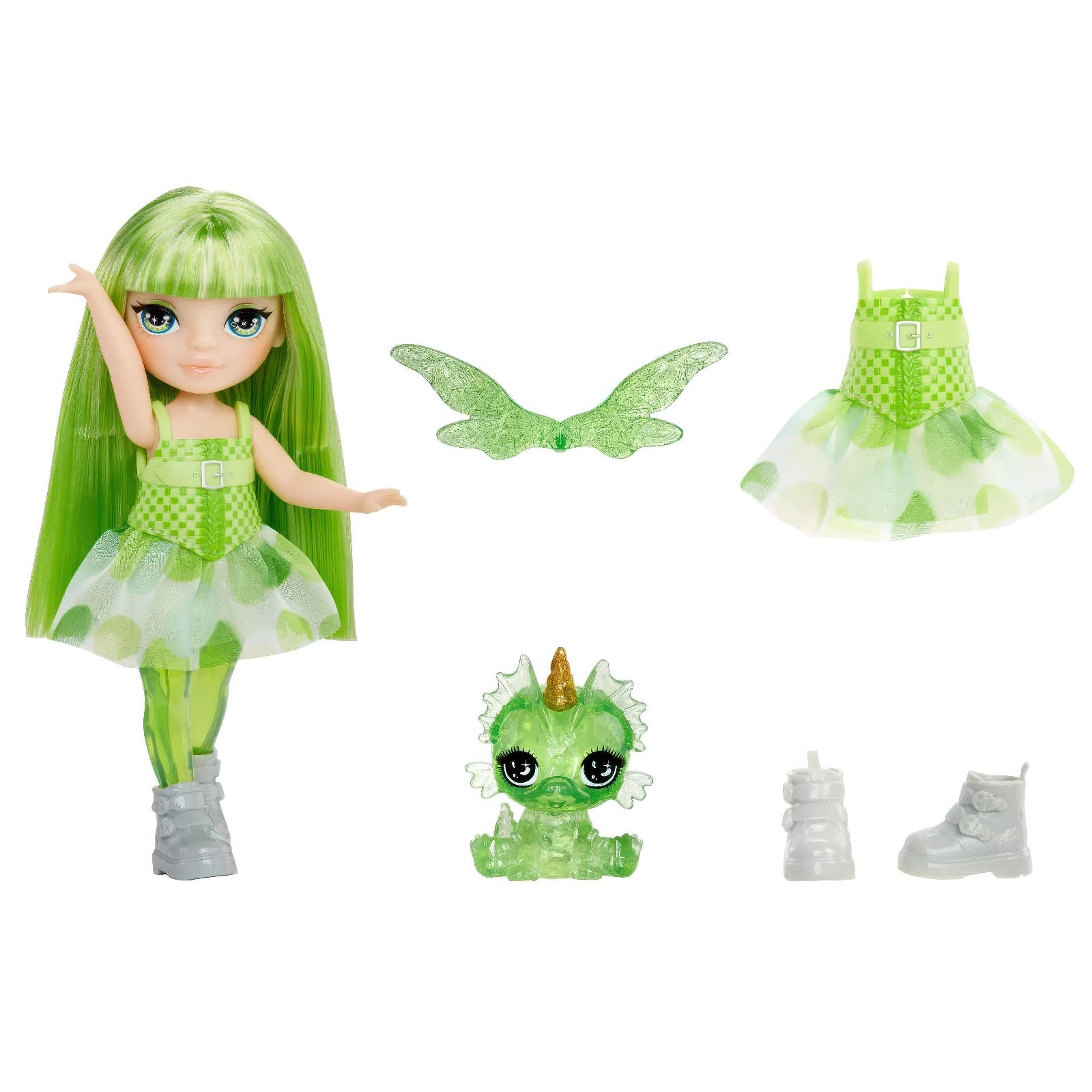 Rainbow High Littles Rainbow Fantasy Fairies with Pet – Emerald, Green 5.5" Small Doll & Fantasy Dragon Pet